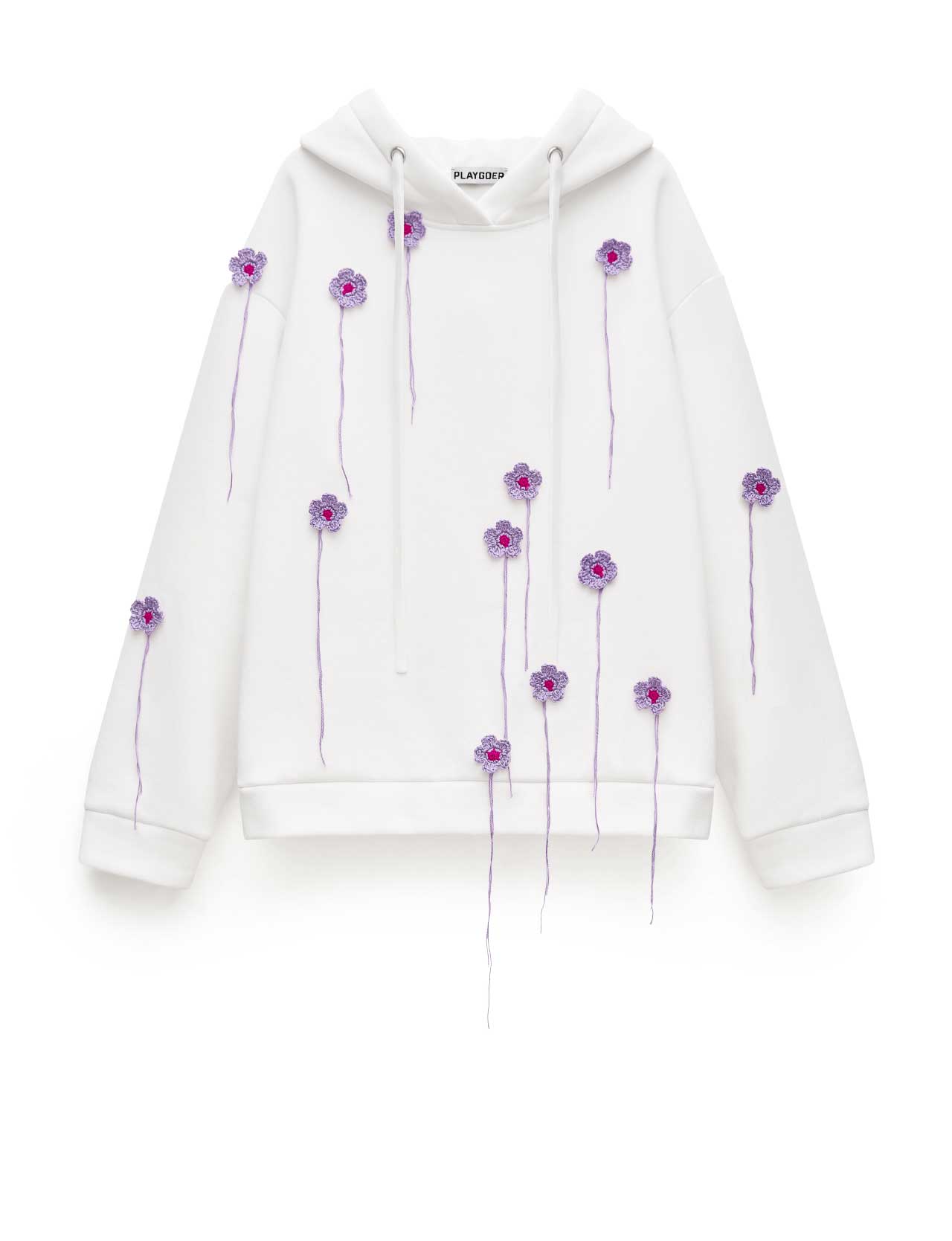 Связанные вручную цветки анемона — сладкоголосые, но обманчивые. Сулят весну, но на самом деле способны согреть в лютый минус. Гладкое снаружи, но c уютным начесом внутри — это худи станет вашей модной защитой от холодов: за окном и в сердце. One love, one size 42-50