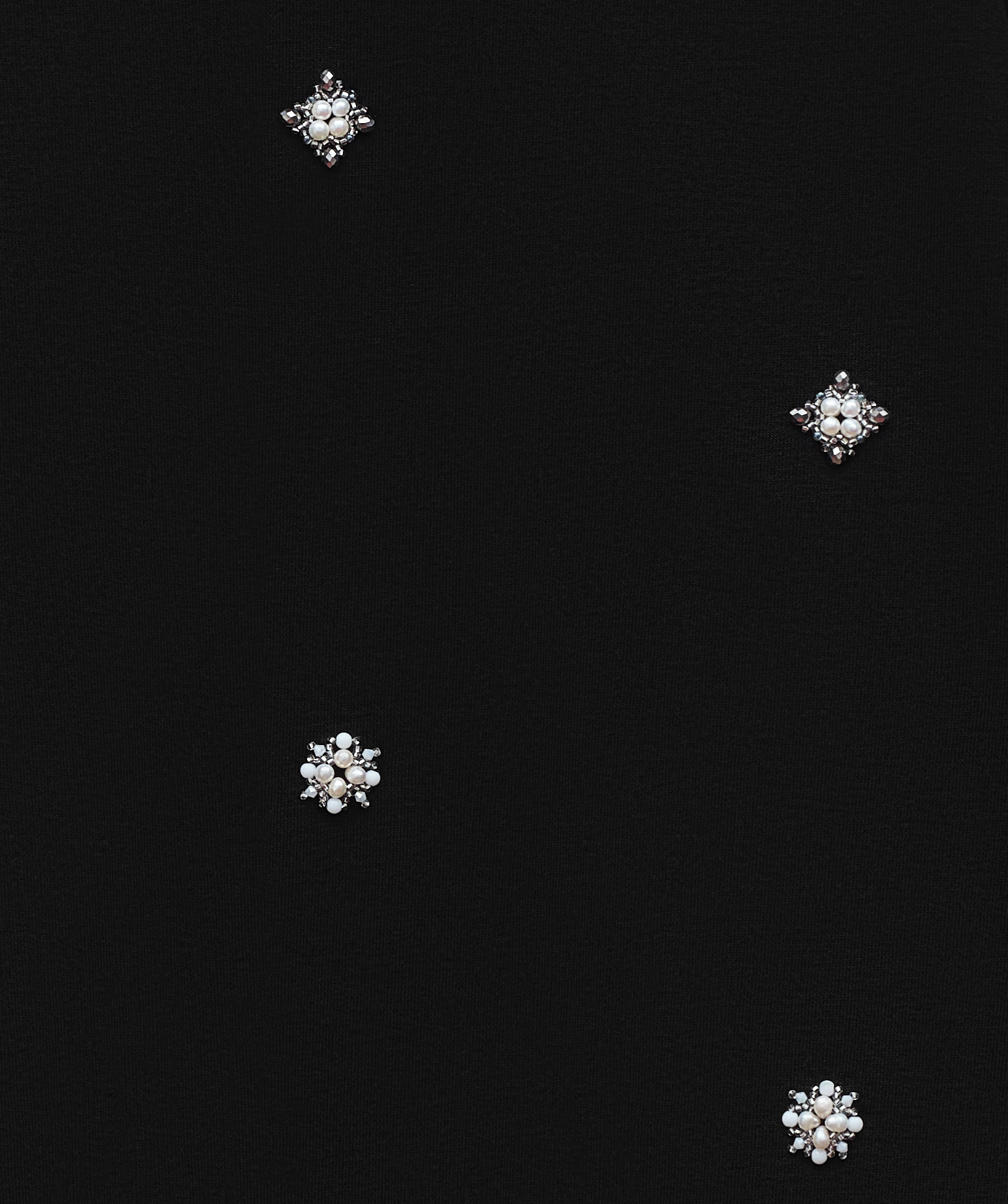 Главные герои новой капсулы — сверкающие кристаллы и жемчуг, белый агат и бусины из граненого стекла, которые мы сначала бережно собирали воедино, а затем пришивали к вещам вручную. Эти камни станут не только центром внимания на любой вечеринке, но и волшебным оберегом для своих обладателей. Стоит только поверить в чудо.